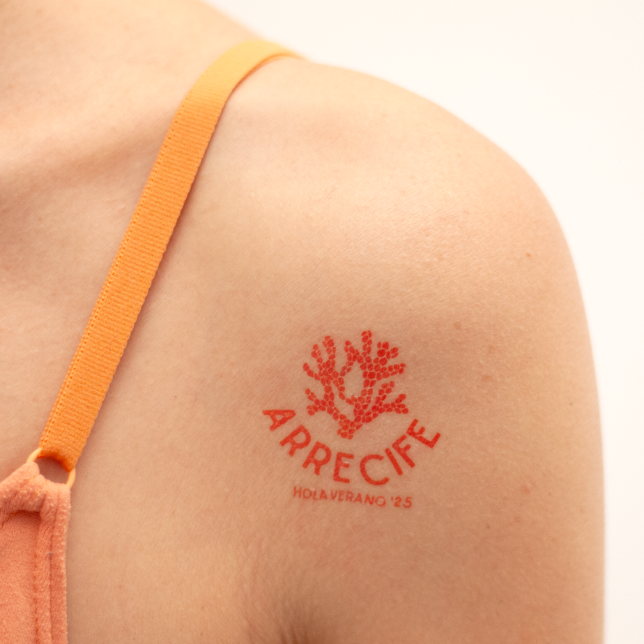 Tattoonie de coral de arrecife para la campaña de verano de Bershka. Creamos un diseño de Tattoonie de un coral de arrecife en naranja brillante para la campaña de verano de Bershka. El motivo se inspiró en la vida marina y el ambiente veraniego, en consonancia con la estética costera y la imagen estacional de la marca.