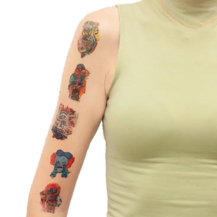 Tattoonies diseñados por artistas para la inauguración de la exposición, creados como